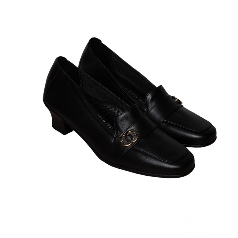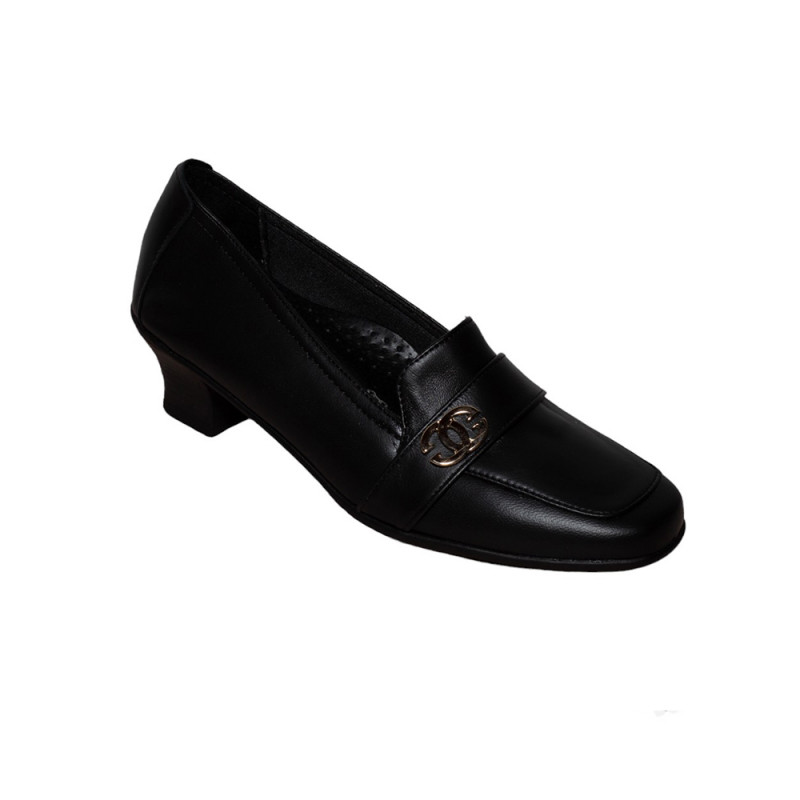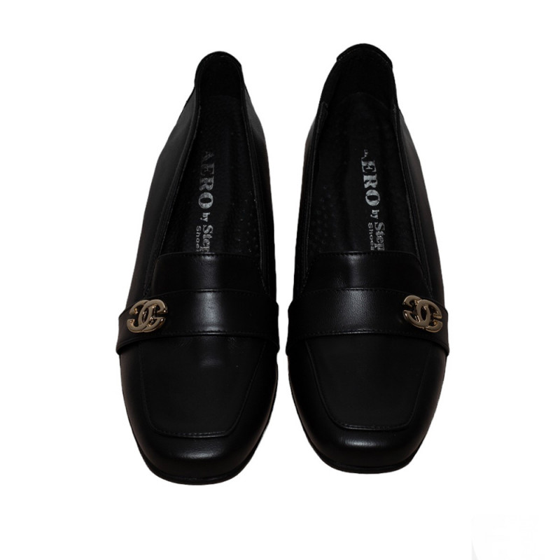 Δερμάτινες γόβες σε κλασσική γραμμή με χαμηλό τακούνι