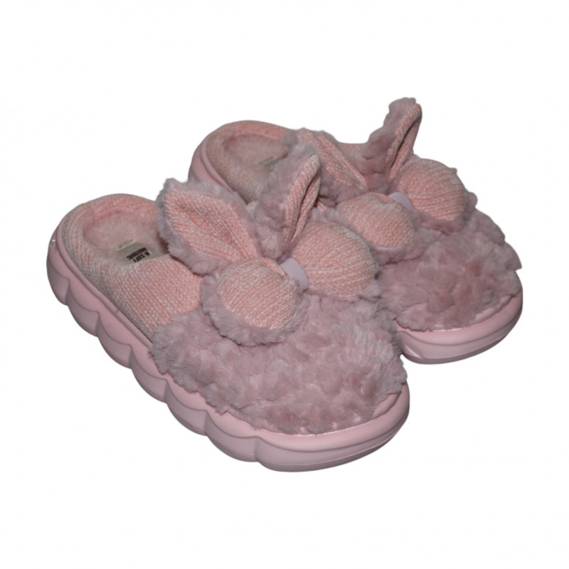 Γυναικείες γούνινες παντόφλες με σχέδιο κουνελάκι